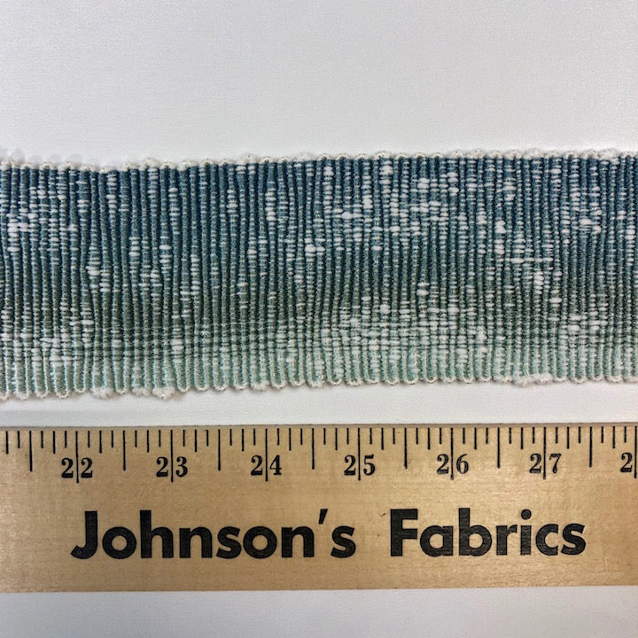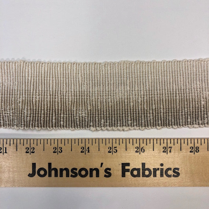 When we measure and cut decorative trim, we allow an extra inch or two to ensure you receive generous yardage and we always finish the raw edge of the trim with tape to prevent fraying.